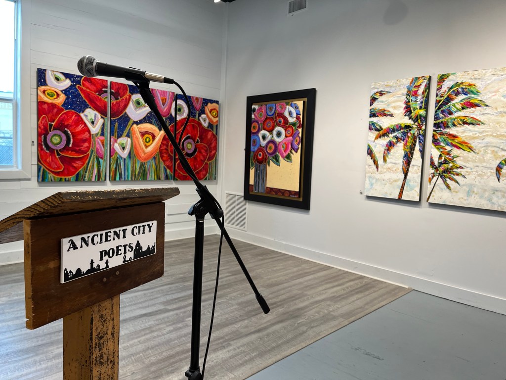 Ancient City Poets invite you to experience the local literary scene on Sunday December 28 at the Maria Reyes Jones Gallery, located at 134 Riberia Street, St. Augustine, Florida 32084.